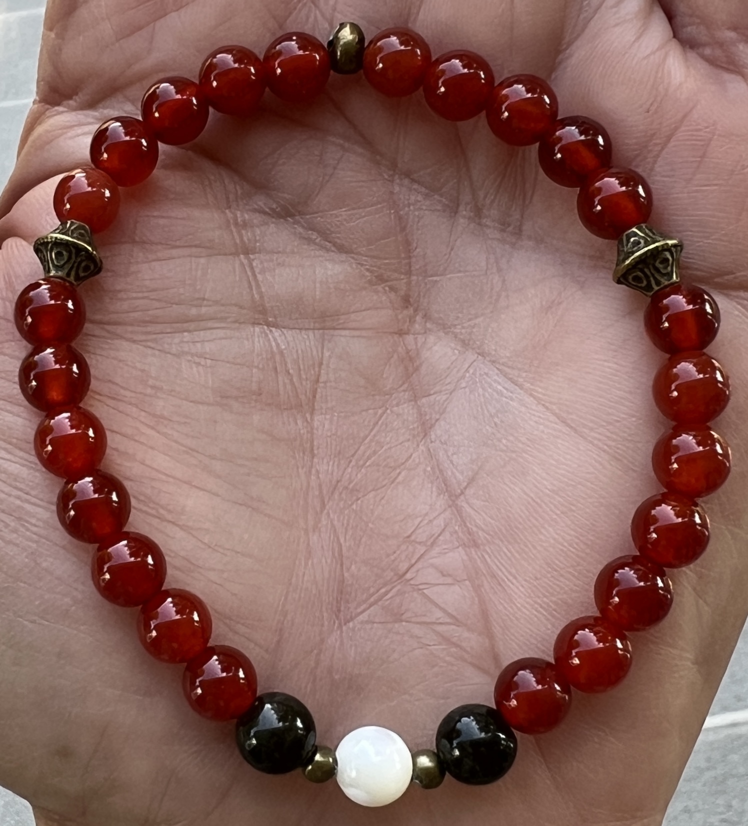 🩵 « Isabelle a créé mon bracelet pour me soutenir dans un travail personnel. Elle m’a montré comment l’utiliser pour me rappeler de ramener ma conscience dans mon corps biologique (comme elle dit) quand je commence à être perturbée par une situation extérieure. Le regarder me rappelle de gérer mes émotions quand elles surgissent. Quand je touche les pierres, je respire et je me ramène dans le calme et la paix intérieure. Il m’incite aussi à prendre conscience de mes pensées négatives. Il m’aide aussi à mieux communiquer mes besoins et mes émotions sans avoir peur du jugement des autres. Mon bracelet me supporte à chaque jour que je le porte, il me fait un grand bien! Merci Isabelle, tu as su le créer exactement comme il fallait, pour m’aider à travailler quelques-unes de mes failles. » de Guylaine Arsenault